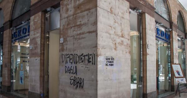I muri imbrattati dagli anarchici sotto Galleria XXV Aprile