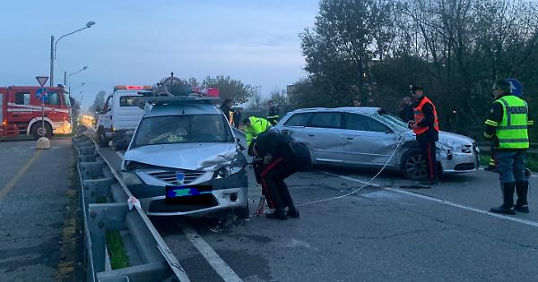 CASTELVETRO PIACENTINO (10 novembre 2019) - Frontale tra due auto oggi pomeriggio poco prima del ponte di Po; feriti i due conducenti (un uomo e una donna). Per i rilievi sono intervenuti i carabinieri di Monticelli d'Ongina e la Polizia stradale di Piacenza; sul posto anche i vigili del fuoco di Cremona. Gravi ripercussioni per la circolazione, con la strada bloccata.