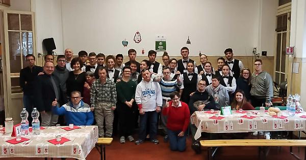 CREMONA (13 dicembre 2019) - Record di presenze oggi al tradizionale Pranzo di Santa Lucia della LAE Società Cooperativa Sociale Onlus di Cremona. In più di 150 persone si sono ritrovate per passare un momento di festa e di condivisione insieme. Il pranzo di Santa Lucia per Lae è infatti un appuntamento fisso per salutare, ringraziare e fare gli auguri a coloro che collaborano con la Cooperativa (società sportive, istituti scolastici, associazioni, aziende...), ma soprattutto un momento di serena condivisione con chi frequenta la Cooperativa, i ragazzi, i famigliari, gli amici, i volontari, i dipendenti, i soci e il consiglio di amministrazione. Tra i commensali anche l’assessore Maura Ruggeri, il presidente della U.S. Cremonese Paolo Rossi e i giocatori e lo staff della Vanoli Basket. Non sono mancati i saluti dall’assessore Rosita Viola e dei giocatori della U.S. Cremonese che hanno riso e scherzato insieme ai presenti.