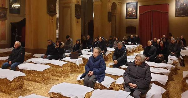 CELLA DATI (2 gennaio 2020) - Una quarantina di persone, senza contare chi, anche solo per qualche minuto, ha deciso di varcare la soglia della chiesa parrocchiale dedicata a Santa Maria Assunta che fa parte dell’unità pastorale di Cella Dati, Pugnolo, Sospiro, Tidolo, Longardore, San Salvatore e Derovere: il Capodanno alternativo promosso da don Umberto Zanaboni (presente anche don Federico Celini, arciprete della parrocchia di San Siro a Sospiro) ha visto una buonissima partecipazione di fedeli provenienti da tante zone del territorio provinciale. Bambini accompagnati da genitori, ma anche giovani coppie e anziani o persone sole. Ad accoglierli, all’esterno, alcune candele. Poi un volta varcata la soglia della parrocchiale, tante balle di fieno al posto dei banchi. Nessuno sfarzo o ricchezza, ma l’essenzialità di una mangiatoia per pregare tutti assieme ma anche in modo intimo e personale per la pace, in attesa del nuovo anno che è appena iniziato.
