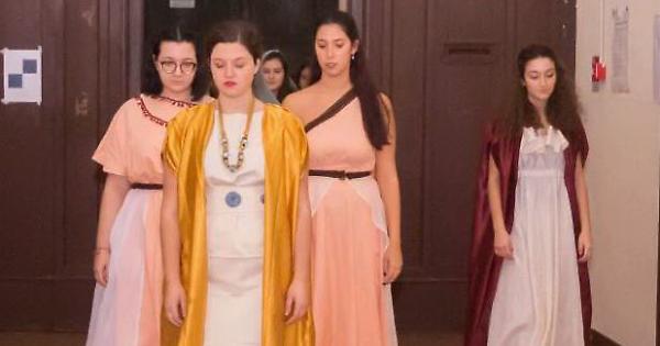 Liceo Manin. L’aula magna dedicata alla musica, il corridoio del piano terra trasformato in palcoscenico per le Vittime di guerra, spettacolo liberamente tratto dalle Troiane di Euripide/Sartre, realizzato dal gruppo teatro, coordinato da Luisa Arli. Al primo piano letteratura e internazionalità si sono coniugati nel segno di Uomini e popoli in movimento, riflessione letteraria realizzata dagli studenti del Manin e del liceo Arsakeio Lykeio di Patrasso (nella foto qui sotto), gemellato con la scuola cremonese.