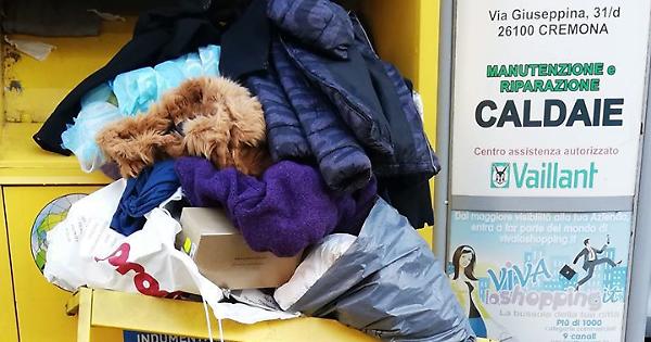 CREMONA (27 gennaio 2020) - A Cremona si apre un nuovo fronte sul tema, sempre attuale, dei rifiuti. Sono diventati un caso quelli che più d’uno ha ribattezzato i cassonetti selvaggi, contenitori adibiti alla raccolta di vari materiali nei quali finisce di tutto. Le segnalazioni fioccano un po’ da tutti i quartieri. Le ultime situazioni rilevanti si sono riscontrate in via Filzi, nel quartiere Sant’Ambrogio, allo Zaist, in via Giordano e in via San Rocco. In via Giordano, per giorni, il raccoglitore di vestiti della Humana ha avuto le sembianze di una discarica: tra i capi di abbigliamento (per i quali è adibito quel grosso contenitore giallo), è spuntato di tutto, inclusi cumuli di resti di cibo maleodorante. In via Filzi la stazione di raccolta per l’olio vegetale viene utilizzata in maniera sistematica per gettare nel contenitore di tutto, a cominciare da cumuli di plastica, che tra l’altro rende difficoltoso il recupero dello stesso olio.