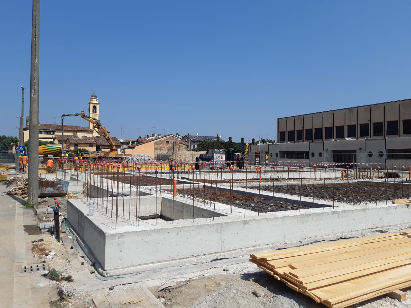 CREMONA (17 agosto 2020) - Proseguono i lavori di costruzione della nuova scuola a San Felice inseriti nel progetto di riqualificazione del quartiere per il quale il Comune ha ottenuto un contributo dalla Presidenza del Consiglio dei Ministri nell’ambito del Bando Periferie. Completata la demolizione della vecchia scuola di San Felice e dopo la pausa forzata dovuta all’emergenza sanitaria da Covid-19, i lavori sono entrati nel vivo.