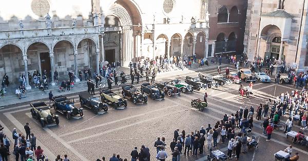 CREMONA (26 settembre 2020) - Una festa di pistoni: quelli degli ottoni dell’Orchestra Filarmonica Italiana, schierati ai piedi del Torrazzo, e quelli delle vecchie signore dell’automobislimo, che hanno sfilato in piazza del Comune. Il Cavec di Cremona, presieduto da Claudio Pugnoli, ha pensato ad un concerto a quattro ruote per celebrare la Giornata nazionale del veicolo d’epoca. In tutto un’ora di splendide melodie: prima il rombo armonioso dei motori, che si è levato al cielo in un intreccio di storie gloriose d’asfalto, di velocità e di tecnologia; poi il possente corpo sonoro di trombe, tromboni e corni, che hanno riempito il salotto buono della città di leggendarie arie d’opera e celebri ritornelli pop. Per ammirare lo spettacolo, gli avventori dei locali accomodati ai tavoli dei plateatici si sono alzati in piedi, mentre i gradini del Duomo facevano da spalti per il pubblico di appassionati.