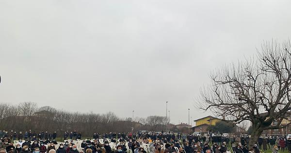 SONCINO (23 dicembre 2020) - A pochi minuti dall’inizio della cerimonia funebre per Alberto Magarini e Lorenzo Adamo, i due giovani soncinesi morti nel tragico incidente di via Brescia, il parco di piazza Della Costituzione e l’intero quartiere Brolo sono già stracolmi di amici. Il rito si svolgerà al centro del campo da basket dove spesso i due amici si sfidavano per intere giornate.