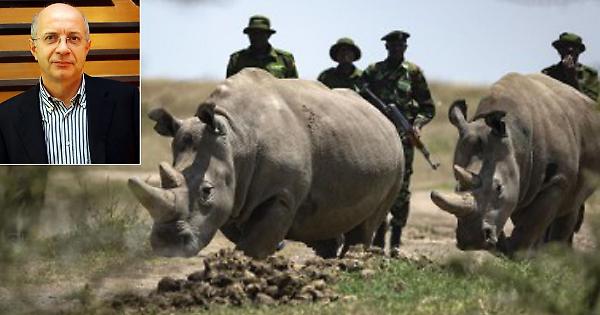 Il rinoceronte bianco e, nel riquadro, Cesare Galli