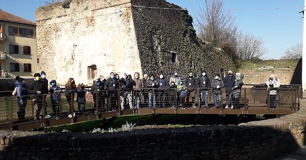 PIZZIGHETTONE (15 febbraio 2021) - Una decina i camper arrivati nella città murata domenica per una gita fuori porta nel giorno degli innamorati, provenienti per lo più dall'alta Lombardia. Un gruppo non organizzato, per un totale di circa una trentina di persone, approdato in riva all'Adda per una visita alle emergenze storico architettoniche del borgo. I primi turisti e camperisti dopo il lockdown. Dopo la prenotazione, procedura obbligata fino ad oggi, domenica mattina i visitatori sono stati raggruppati, accolti ed accompagnati nella visita guidata dalle guide del Gruppo Volontari Mura, lungo la cerchia muraria di via Boneschi con le Casematte, alla Torre del Guado e lungo il centro storico di Pizzighettone. Con mascherine e distanziamento assicurato grazie alle audioguide, un investimento di quest'anno del Gruppo Volontari Mura per garantire appunto il rispetto delle norme di sicurezza, accoglienza e l'accompagnamento turistico con tutte le garanzie necessarie in regime di pandemia. I camperisti hanno gradito, fatto complimenti e acquistato anche confezioni di Fagiolini dall'Occhio di Pizzighettone, con la promessa di ritornare in autunno in occasione della maratona gastronomica dedicata al piatto tipico pizzighettonese. Info: Gruppo Volontari Mura Pizzighettone, www.gvmpizzighettone.it
