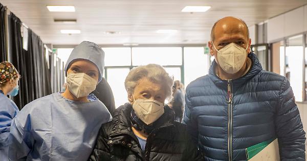CREMONA (11 marzo 2021) - Finalmente immuni. A metà mattina il traguardo lo ha tagliato la signora Alma Molinari, 107 anni, la più anziana dei lombardi, testimonial, a Cremona, della campagna di vaccinazione over 80. Come tre settimane fa - allora al sesto piano dell’ospedale Maggiore, oggi più comodamente in Fiera - è arrivata accompagnata dall’amato nipote Giovanni Raffi. «Dopo la prima somministrazione, la nonna è stata benissimo. Non ha avuto nulla, nemmeno il dolore al braccio», sorride Giovanni. Alma in queste tre settimane ha continuato la sua dieta: cotechino, cioccolato fondente (ne va pazza), caffè corretto grappa. Ed insieme ad Alma si è vaccinata anche la figlia Vilma, 86 anni.