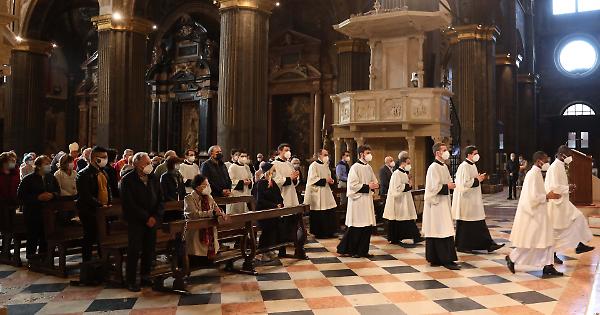 CREMONA (2 aprile 2021) - Non c’è messa il Venerdì santo. La Chiesa celebra l’azione liturgica della Passione del Signore. Così è stato anche in Cattedrale, con l’ingresso, in religioso silenzio, del vescovo Antonio Napolioni, preceduto dai seminaristi, dai canonici del Capitolo, dai diaconi. Poi la prostrazione in preghiera, la liturgia della Parola con la lettura dialogata della Passione secondo Giovanni, la Preghiera universale alla quale, dallo scorso anno, sono state aggiunte le intenzioni per la liberazione dall’epidemia, per le sue vittime e per gli operatori sanitari che si prendono cura dei malati. Seguono l’adorazione della Croce – quest’anno senza il bacio dei fedeli – e i riti della comunione, con le ostie consacrate il giorno precedente. E, nell’omelia, il vescovo si è ricollegato alle precedenti liturgie della Settimana santa, da quella della Domenica delle Palme con l’invito a guardare alla Passione del Signore «da dentro il cuore», a quella ‘In coena Domini’ della sera del Giovedì santo, in cui Dio stesso ci invita a cena, si china a lavare i piedi dei discepoli, non caccia chi sta per tradirlo. Nella Passione secondo Giovanni – ha spiegato monsignor Napolioni – gli eventi drammatici ci rivelano ulteriormente «l’ospitalità del Figlio di Dio». È lui che «si invita a cena a casa nostra», che assume la nostra carne, con il suo carico di dolore, di solitudine, di violenza, di peccato, per trasformare il male con il bene: «si butta nella nostra realtà, dona tutto, si dona tutto, perdona tutto». Davvero, come scrive l’autore della Lettera agli ebrei, possiamo accostarci «con piena fiducia al trono della grazia», che è la Croce, «per ricevere misericordia e trovare grazia così da essere aiutati al tempo opportuno». Quello della Passione secondo Giovanni – ha proseguito - «è un Vangelo ricchissimo di doni, i regali di Pasqua, i doni dell’ospite rifiutato, quelli che Lui però non riporta via. Siamo liberi di seguirlo o di respingerlo. Dona la verità, dona la vita, dona il suo regno ai popoli di ogni tempo mentre i regni terreni passano... lascia che si prendano le sue vesti, consegna il suo mite silenzio a Pilato... consegna sua Madre a Giovanni, alla Chiesa, a tutti noi, consegna il suo spirito al Padre e agli uomini, sangue e acqua dal suo costato, consegna infine il suo corpo morto al sepolcro e al silenzio». L’ultima frase del brano evangelico dice che «Là posero Gesù». «Con il dubbio – ha aggiunto il vescovo – che sia una resa o l’attesa della vittoria». Una conclusione che pone domande agli uomini: dove e come vogliamo Gesù nella nostra vita, in quella delle persone che incontriamo, in quella del mondo. «Solo lui – ha concluso – custodisce il segreto della speranza e dona a noi la forza di cambiare». Il rito, molto partecipato, si è concluso con la preghiera di monsignor Napolioni e dei canonici alla cappella delle Reliquie, nel transetto nord, dove - in assenza della tradizionale processione - la Sacra Spina donata nel 1591 da Gregorio XIV alla sua Chiesa cremonese è esposta, anche nella giornata di oggi, Sabato santo, alla devozione dei fedeli. All’uscita dalla Cattedrale sono state raccolte, come ogni anno in questa giornata, le offerte per le comunità cattoliche, particolarmente provate, della Terra Santa.