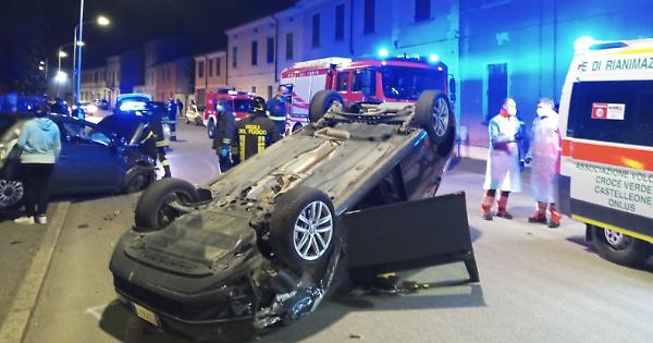 SORESINA (16 aprile 2021) - Schianto fra due auto poco prima delle 21 in via XI Febbraio. In seguito all'impatto, una delle due vetture si è ribaltata in mezzo alla carreggiata mentre l'altra è stata sbalzata contro la recinzione di una villa, danneggiandone muro e inferriate, e rompendo anche la tubatura del metano. Il timore di una possibile fuga di gas è stato scongiurato dagli accertamenti dei vigili del fuoco, che comunque stanno ultimando la messa in sicurezza della zona. Tre le persone coinvolte nello scontro, e lievemente ferite. Sul posto anche una ambulanza della Croce Verde di Castelleone e la polizia locale di Soresina.