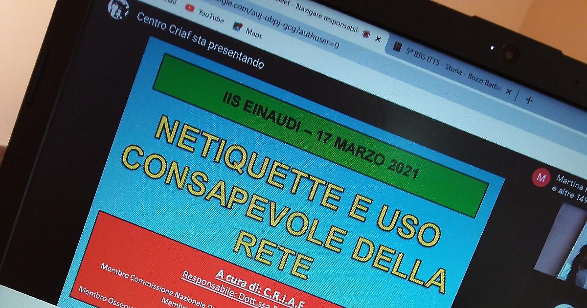 CREMONA (18 aprile 2021) - “Navigare responsabilmente” è un ciclo di incontri organizzato dall’Istituto Luigi Einaudi, per formare alunni, docenti e famiglie su un corretto uso della rete. L'iniziativa è stata fortemente voluta dalla preside Nicoletta Ferrari, per aiutare ragazzi ed adulti a riconoscere potenzialità e rischi del web.