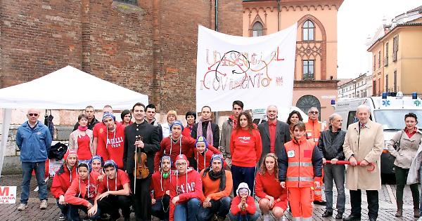CREMONA - Un flash mob per sensibilizzare sul tema della sclerosi multipla. Questa mattina piazza del Comune si è animata di tanti ragazzi vestiti di rosso in occasione dell’iniziativa organizzata dall’Aism (Associazione Italiana Sclerosi Multipla). Nel corso dell’evento il maestro Fedeli ha suonato uno dei pezzi pregiati della liuteria locale: lo Stradivari Ex Adam 1726.