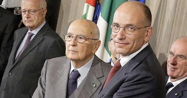 Giorgio Napolitano stringe la mano a Enrico Letta