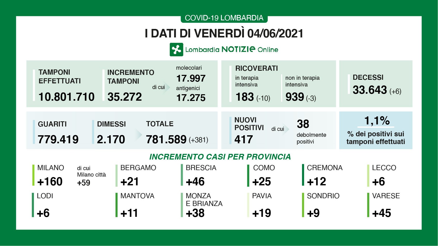CORONAVIRUS IN LOMBARDIA: IL QUADRO DEL 4 GIUGNO