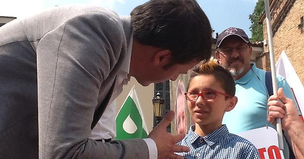 Alla fine il tanto sospirato incontro è avvenuto: stretta di mano e auguri reciproci, mercoledì a Lodi, tra il giovane ricenghese Mattia Costa e il sindaco di Firenze Matteo Renzi. Il bambino, che in virtù dei suoi undici anni si è guadagnato l’appellativo di ‘renziano più giovane d’Italia’, ha coronato il suo sogno: incontrare il ‘rottamatore’, suo idolo assoluto, di cui ne aveva tessuto le lodi durante la recente partecipazione (insieme alla quinta elementare di Ricengo) ad un programma su Rai Uno. Complice la presenza ad un comizio a Lodi, Renzi ha invitato il suo giovane fan ad assistere all’appuntamento. L’undicenne, accompagnato dal sindaco di Ricengo Ferruccio Romanenghi, dalla mamma Luisella Boschiroli e dal maestro Alex Corlazzoli, si è seduto in prima fila e ha seguito con attenzione il dibattito. Ma il clou doveva ancora arrivare: quando Renzi ha scorto Mattia tra il pubblico, infatti, lo ha chiamato sul palco tra gli sguardi stupiti dei presenti. Due battute al volo e poi appuntamento a fine comizio, quando il bambino ha chiesto al sindaco di autografargli il suo ultimo libro. Detto fatto: «A Mattia, che diventerà premier».