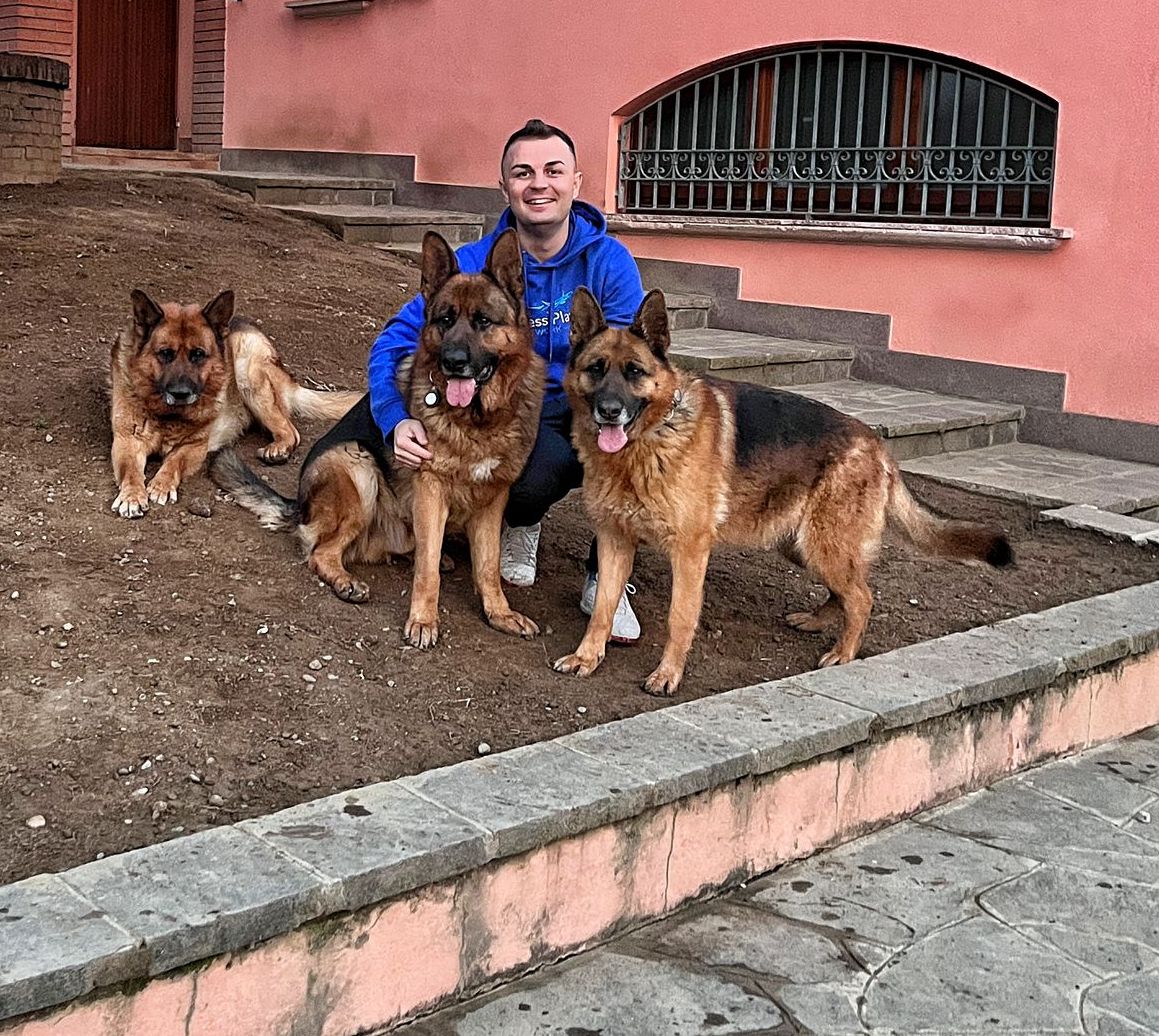 Arte Popusoi con i suoi pastori tedeschi: il cane Alpha è al centro