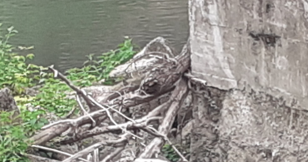 In parte si tratta di essenze ormai secche, cadute lungo le rive a causa dei violenti eventi atmosferici recenti e meno recenti. In parte sono invece rami e tronchi portati a valle dalla corrente, quando ancora ce n’era. Di questi, alcuni tronchi si sono fermati contro il basamento dei piloni che sorreggono il già malandato ponte di via Cadorna.