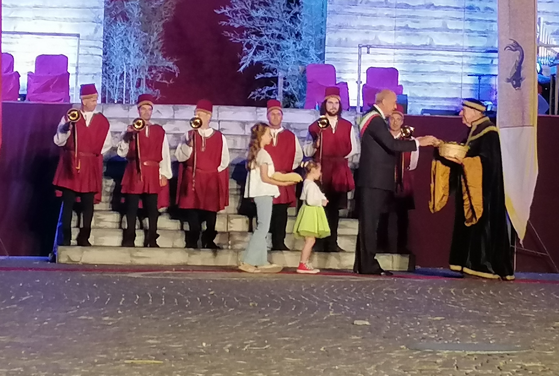 La benedizione dei gonfaloni e delle contrade sul sagrato della chiesa