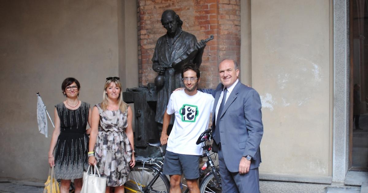 Al suo arrivo in città è stato accolto dal sindaco Oreste Perri e dall'assessore alle Politche Giovanili Jane Alquati, ai quali ha raccontato il percorso seguito per raggiungere l'italia: dopo essere passato dalla Turchia in Grecia, si è imbarcato a Patrasso e ha quindi raggiunto Brindisi, da dove è risalito fino a nord. Ad accoglierlo c'era anche Elisabetta Dilda, responsabile dell'Ufficio che si occupa del Servizio Civile sia per ragazzi italiani che stranieri.