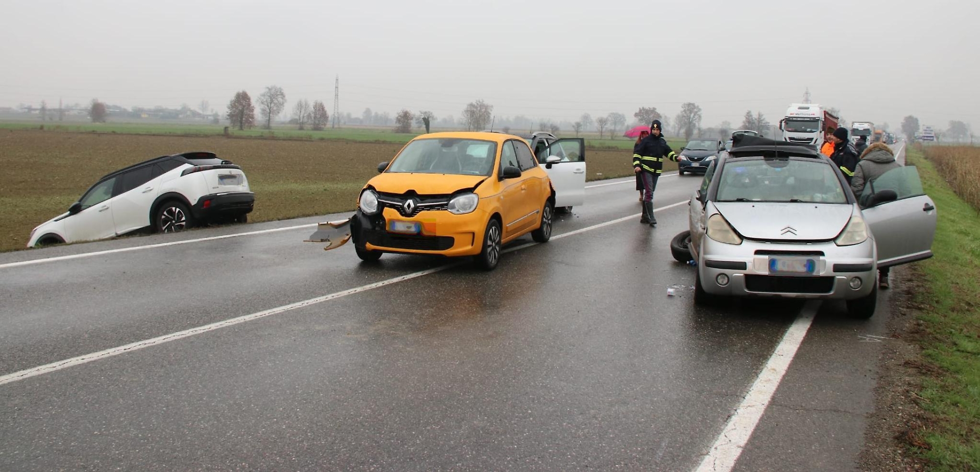 CASTELLEONE - Almeno quattro veicoli convolti, ben cinque persone che hanno dovuto essere medicate. E' il bilancio dell'incidente stradale avvenuto alle 9.30 sulla Paullese nel tratto tra Corte Madama e l'ingresso del borgo. Fortunatamente lo scontro multiplo non ha causato gravi ferite alle persone coinvolte, ma la strada è completamente bloccata con pesanti ripercussioni alla viabilità. Sul posto Polstrada, vigili del fuoco, due ambulanze e l'automedica.