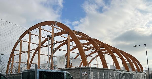 Il capitolato prevede il rifacimento della copertura, con la posa in opera di un telo in tessuto di Trevira, l’installazione di un nuovo diffusore d’aria e di quatto «arcarecci» in legno lamellare, in sostituzione di quelli rotti dall’evento atmosferico, con le medesime caratteristiche di quello esistenti. I lavori contemplano la scrostatura fino al vivo delle murature, la spazzolatura finale, il lavaggio e la pulizia della superficie scrostata, la tinteggiatura, gli intonaci. Nel progetto di sistemazione è inclusa anche la posa in opera di un nuovo pavimento di gioco in pvc «autoposante flottante».