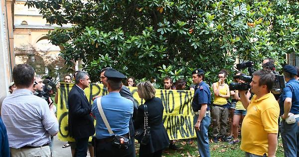 La contestazione del Kavarna durante la visita di Roberto Maroni a Cremona