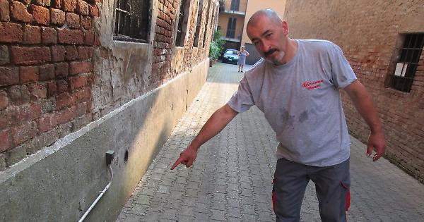 Mirco Poli mostra il selciato imbrattato dai piccioni