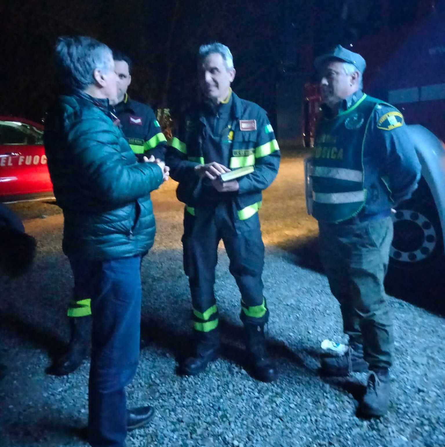 L'intervento dei vigili del fuoco per spegnere delle braci lasciate accese da un gruppo di frequentatori del parco
