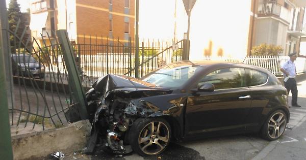 L'Alfa Mito incastrata in un cancello dopo l'incidente di via Ca del Vescovo