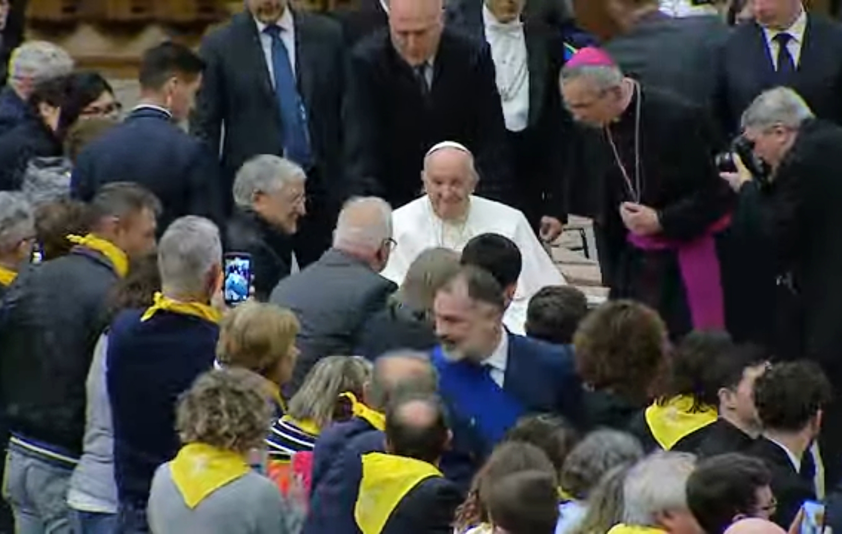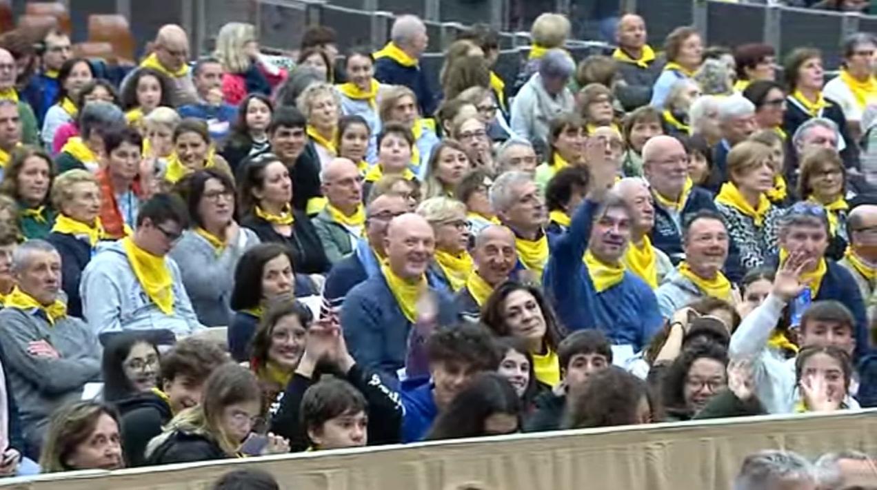 Pochi minuti prima, il vescovo Daniele Gianotti aveva presentato la diocesi al Papa. "Beatissimo Padre Francesco ho la gioia di presentarle la diocesi di Crema, la rappresentano qui oltre 2.000 fedeli di varie età e condizioni, qualcuno è ancora per strada e sta arrivando. Vorrei ricordare gli amici della diocesi di Cosenza qui in 50, una realtà a noi vicina per attività che abbiamo fatto insieme soprattutto per giovani e adolescenti. Da tre anni aspettavano questo incontro con lei dopo la beatificazione di padre Alfredo Cremonesi. Oggi finalmente possiamo ringraziarla. La missione è radicata nella tradizione della nostra Chiesa, i nostri sacerdoti sono al servizio delle chiese dell’America Latina".