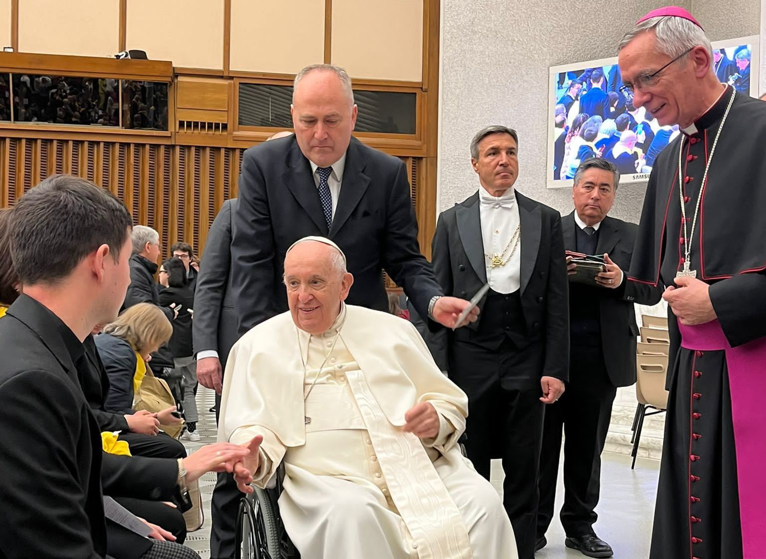 "Tra i missionari cremaschi - ha proseguito il vescovo Gianotti - mi è particolarmente caro ricordare padre Pierluigi Maccalli, per il quale abbiamo tanto pregato nei due anni della sua prigionia in Niger e in Mali. Il nostro desiderio è che il fuoco della missione si mantenga vivo nel nostro territorio, l’operosa Lombardia, nelle parrocchie, nelle associazioni. Siamo consapevoli che non basti tenere vive le tradizioni del passato, seguiamo l’esortazione che lei Santità rivolge ai fedeli a uscire verso gli altri, attraverso la vita secondo il Vangelo, la ricchezza e la grazie di Cristo morto e risorto. Non siamo sicuri di aver trovato ancora la via buona e per questo le chiediamo di incoraggiarci e guidarci. Grazie Sanità per averci accolto, per il tempo che ci dedica, per le parole che vorrà rivolgerci e per la sua paterna benedizione".
