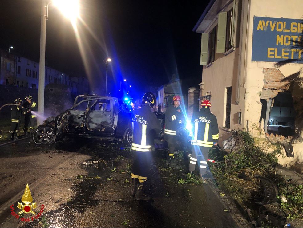 SONCINO - È di un morto - il 33enne Paolo Carubelli di Ticengo - e di altri quattro feriti, tra cui uno grave elitrasportato al Civile di Brescia, il bilancio del tragico incidente avvenuto questa notte, poco dopo le 3 e mezza, in via Nazario Sauro a Soncino. Secondo le prime ricostruzioni dei carabinieri di Soncino la vittima, alla guida del suo pick up Dodge, avrebbe perso il controllo del veicolo sulla curva poco prima dell’ingresso in centro storico, andando a schiantarsi violentemente contro un’abitazione a lato della carreggiata. L’urto di entità tale da squarciare la parete esterna della casa. Il mezzo avrebbe poi preso fuoco. Per il 33enne non c’è stato nulla da fare. A bordo, immediatamente soccorsi, due ragazzi di venti e ventitré anni e due donne di 27 e 28. Sul posto anche i vigili del fuoco.