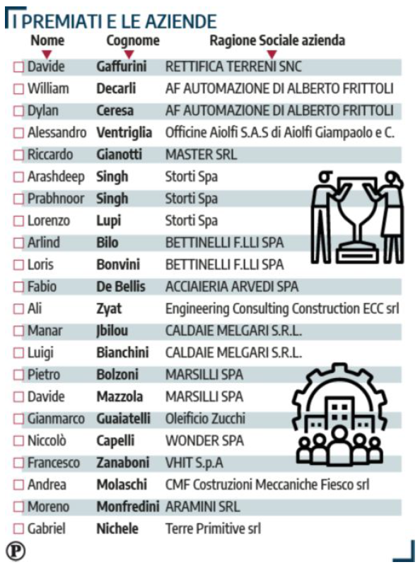 A chiudere il pomeriggio le premiazioni e l’intervento di Nucera, direttrice ITS, che ha portato i saluti del presidente Renato Ancorotti. «La formazione è un momento essenziale nella vita personale lavorativa che deve essere continua — ha detto — non ci si può fermare. Come ha appena ricordato Allegri, gli ITS non hanno nulla da invidiare ad altri master o percorsi post diploma. Questo è un messaggio che lancio a voi ragazzi, nostri ambasciatori della formazione sui banchi e in azienda, che il prossimo anno otterrete il diploma: abbiamo fatto sul serio mettendo a tacere alcuni pregiudizi. La nostra missione è andare oltre. Intanto godetevi questo momento».