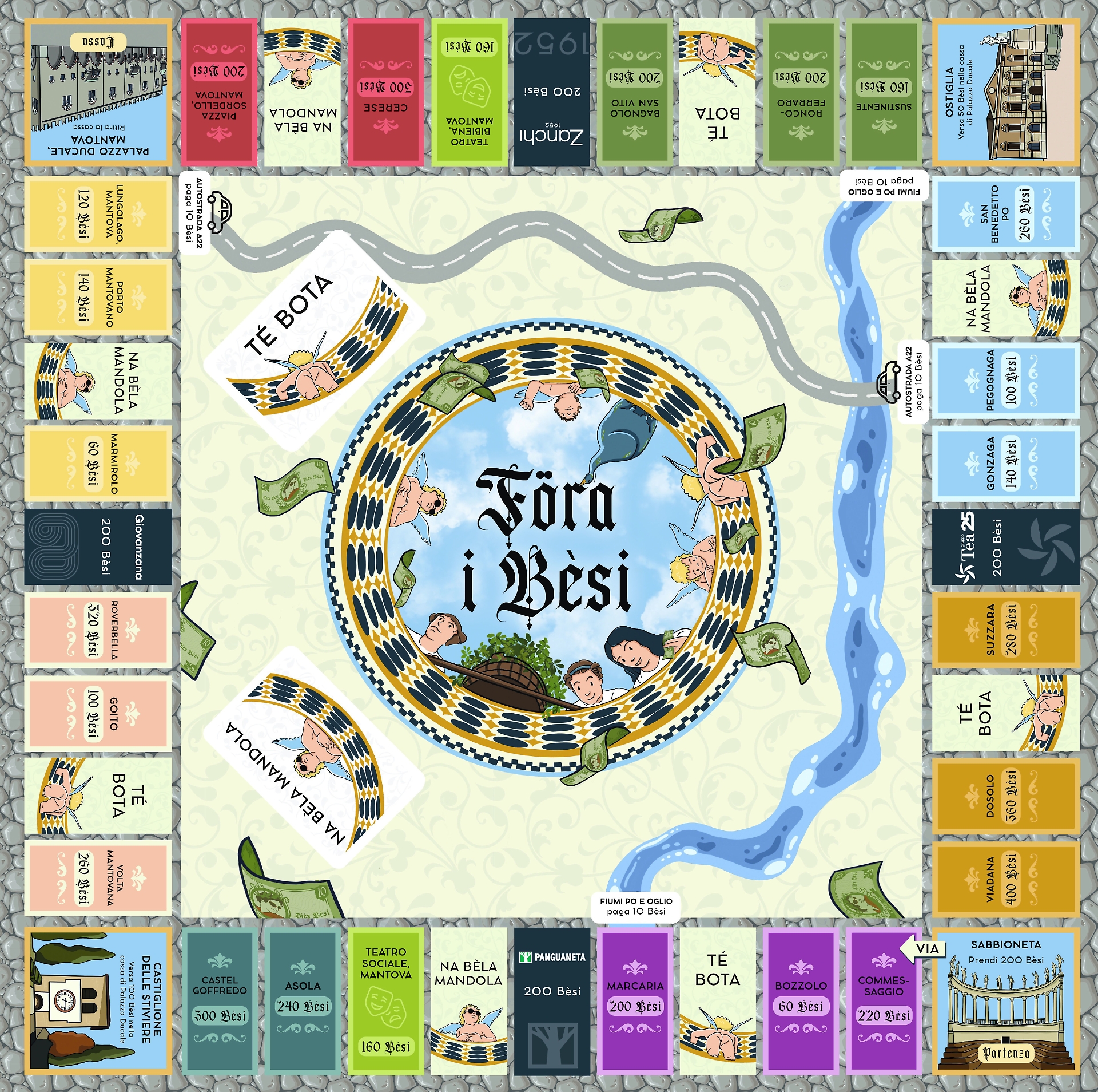 La partenza del gioco, a cui si può partecipare da 2 a 6 giocatori, è da Sabbioneta, dove ad oggi passaggio si guadagnano 200 bèsi, si può passare anche dai fiumi Po e Oglio con il pagamento di 10 bèsi. Oggi paese, da quelli della zona viadanese a quelli di altri territori della provincia, hanno un costo. Naturalmente, come in tutti i giochi in scatola con del denaro, vince chi alla fine ha più soldi. «Ringrazio le attività che hanno supportato la creazione del gioco a titolo di sponsor per l’entusiasmo e la fiducia dimostrati, e perché è sempre un piacere lavorare con chi, come Giovanzana, TEA, Panguaneta e Zanchi, negli anni ha saputo tener salde le proprie radici nel territorio nonostante gli occhi sempre puntati al futuro e all’innovazione. Ringrazio Barbara Fontanel - La Panificatrice Folle - e l‘associazione Amici Ludici, e in particolar modo Gabriele Berzoni, per aver supportato con passione lo sviluppo del gioco. Un grazie a tutto il team di Copiaincolla per aver partecipato con dedizione e originalità a tutte le fasi di creazione del gioco. Infine ringrazio Diego Guido e Noemi Novellini per avermi supportata nell’arduo compito di scrivere e tradurre le espressioni dialettali». Il gioco in scatola è già disponibile online e nelle prossime settimane inizierà anche la distribuzione fisica nei negozi. Entro fine anno è prevista anche una presentazione a Bozzolo.