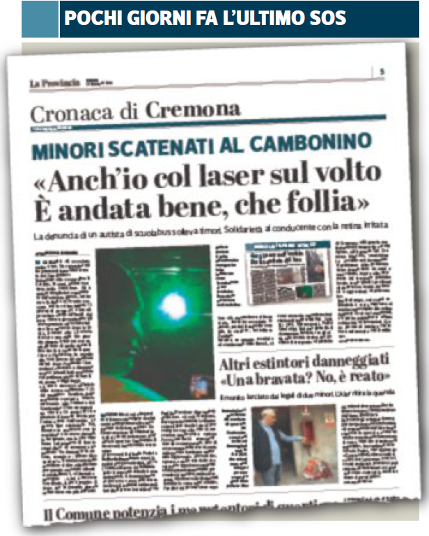 Da tempo, ormai, i dipendenti del Tpl denunciano apertamente la totale assenza di sicurezza. A descrivere la situazione è Fabrizio Badagnani, segretario della Faisa Cisal, sindacato degli autoferrotranvieri. «La situazione è gravissima - commenta Badagnani -. Negli ultimi tre mesi ci sono stati sei o sette episodi molto gravi, l’ultimo dei quali giovedì e il penultimo avvenuto il mese scorso». Badagnani fa riferimento a un caso che ha fatto scalpore: un laser puntato agli occhi di un conduttore e una vera e propria tragedia sfiorata. «Non solo il laser avrebbe potuto danneggiare la retina del conduttore, togliendogli la vista, ma l’episodio ha messo a rischio l’incolumità dei passeggeri».