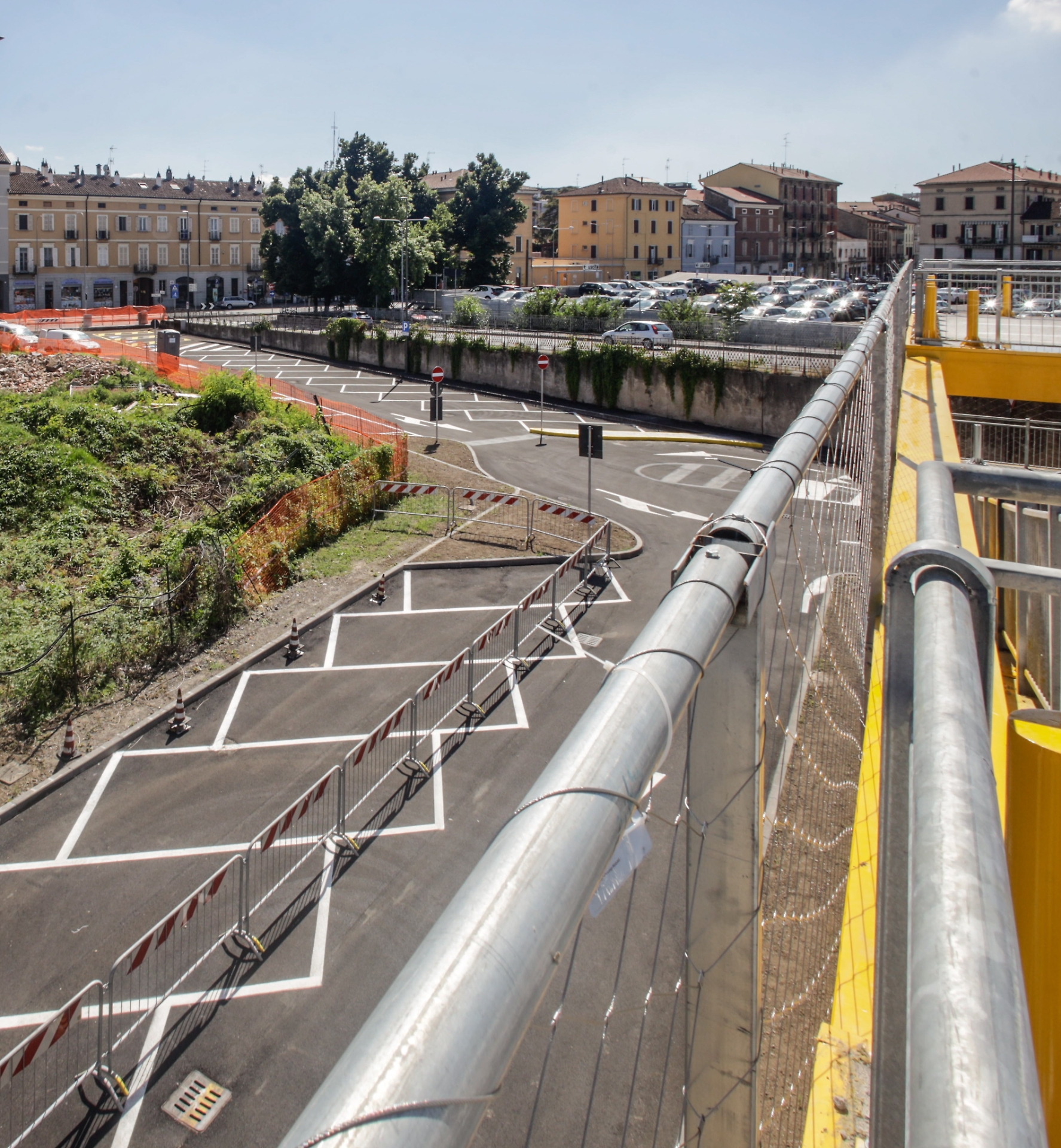 Un multipiano costruito anche in un’ottica sostenibile: «La struttura sarà successivamente ricoperta da un falso gelsomino che verrà piantumato tutto attorno quando la stagione sarà adeguata all’intervento». Bella anche la scelta del giallo, colore che dà vivacità al tutto: «Una scelta progettuale questa, approvata ovviamente anche dalla Commissione paesaggio. L’obiettivo che ha sempre identificato il progetto è quello aver sempre meno auto nel centro storico e per questo erano necessari parcheggi dotare la città di parcheggi a corona». A luglio, inoltre, partiranno i lavori per la sistemazione del parcheggio a raso di via Fezzi, oggi in parte già utilizzato, che sarà unito al multipiano. Proprio per questo motivo, con il cantiere attivo, la viabilità in zona è al momento ancora provvisoria».
