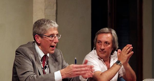 Posti esauriti nei chiostri del Sant’Agostino per l’appuntamento con Mario Giordano, direttore di Videonews (ha appena lasciato la direzione di TgCom24) e Paolo Tomelleri, clarinettista e saxofonista che nella sua carriera ha suonato con i maggiori musicisti internazionali. L’incontro è stato organizzato nell’ambito della rassegna ‘I manifesti di Crema’ ed ha visto Giovanni Bassi affiancare Giordano. Il giornalista ha intrattenuto il pubblico commentando alcune delle principali notizie della giornata tratte da diverse testate: dalla visita in Brasile del Papa per la Giornata mondiale della Gioventù al caso Kazakistan — ha volutamente tralasciato la nascita del royal baby —. Una lettura secondo il punto di vista di un esperto del settore, inframmezzata dagli intermezzi musicali di Tomelleri. Quest’ultimo, tra l’altro, sarà tra i protagonisti della giornata di domenica. Tornerà ad esibirsi al parco di Santa Maria accogliendo, intorno alle 11, i partecipanti alla ciclo passeggiata che il Comune organizzerà, con partenza alle 10,30 da piazza Duomo. Giordano ha approfittato della serata per dialogare con il pubblico raccogliendo domande e osservazioni sulle varie notizie commentate.