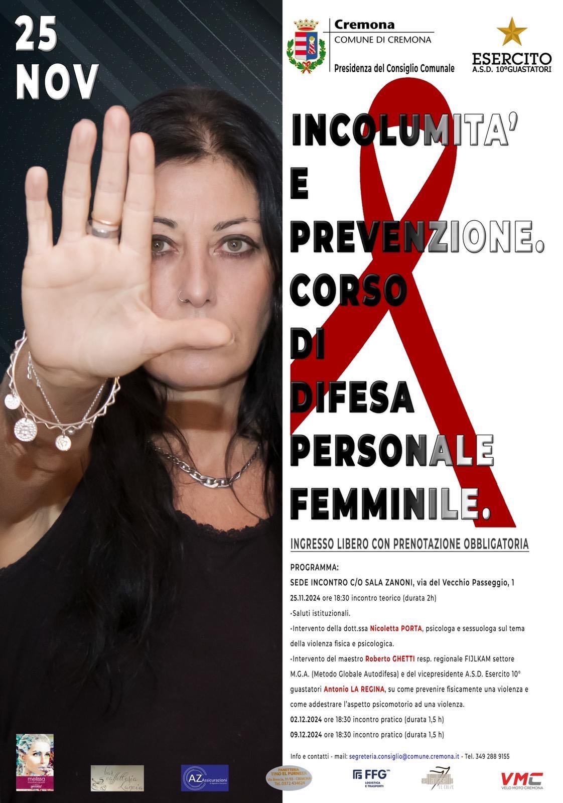 CREMONA - Incolumità e prevenzione: sono questi i due obiettivi del corso di difesa personale femminile organizzata dall'A.S.D. Esercito 10° Guastatori in collaborazione con la Presidenza del Consiglio Comunale.