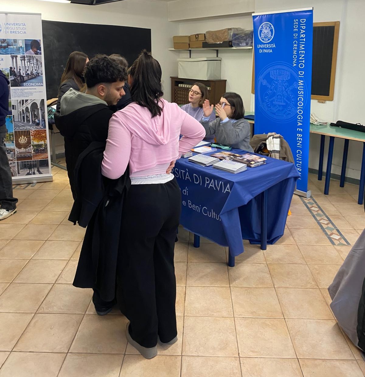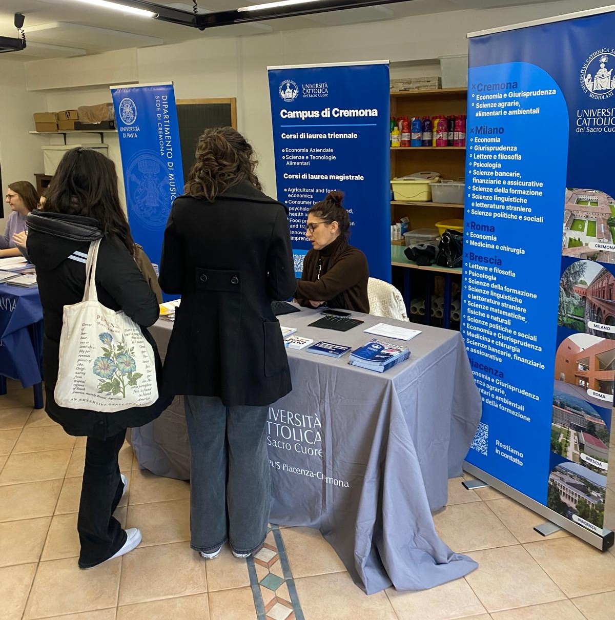 Gli studenti dell’Istituto “A. Stradivari” hanno avuto l’opportunità di visitare gli spazi espositivi allestiti da Università, Accademie e altre realtà post-diploma. Durante la visita, hanno potuto confrontarsi direttamente con i referenti, raccogliere informazioni e materiali utili, chiarire eventuali dubbi e soddisfare anche qualche curiosità. Inoltre, nel corso della mattinata, i ragazzi hanno partecipato a presentazioni nell’aula magna, durante le quali hanno ascoltato testimonianze dirette dei docenti universitari e di altre istituzioni formative. Questi interventi sono stati finalizzati ad arricchire la comprensione delle dinamiche del mondo della formazione, offrendo loro un prezioso supporto nel percorso di orientamento post-diploma.