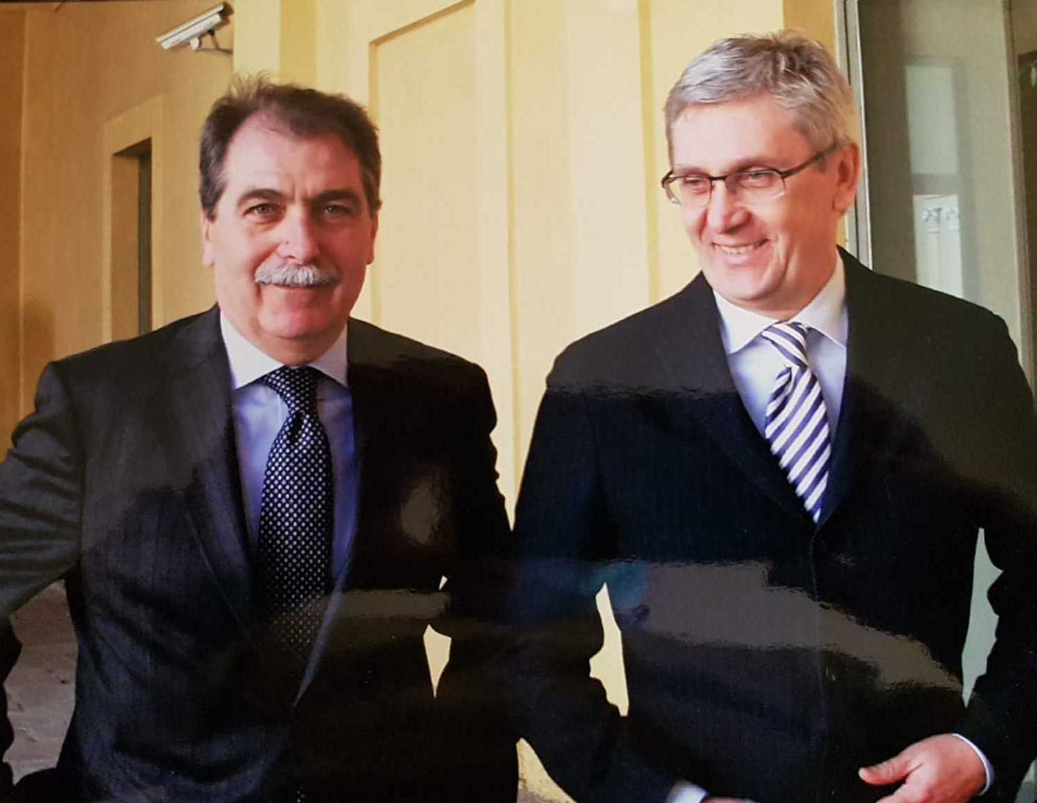 Gian Pietro Gennari con il geologo Gianni Porto alla Bissolati e il surnatante estratto dal piezometro