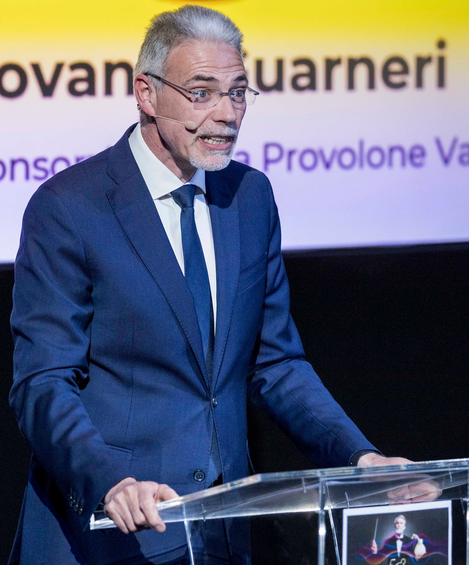 È seguito il momento delle premiazioni assegnate dal Consorzio con le sculture tematiche appositamente realizzate dall’artista Giovanni Parma. Per primo è stato premiato lo stesso Bozzetti (già studente alla Casearia di Pandino), poi i rappresentanti delle aziende associate: Brazzale, Casearia bresciana, Casearia Monti trentini, Caseificio Albiero, Caseificio Ghidetti, ‘Gennaro Auricchio’, Latteria pizzighettonese, Ca’ de Stefani, Latteria Soresina, Fattorie Cremona, Caseificio Gardalatte. Dopo la ‘Pausa tra le stelle’ e l’intermezzo comico di Ale e Franz, le conclusioni e i ringraziamenti del presidente Guarneri nella sottolineatura di una «filiera che ha saputo crescere unita, fondando la collaborazione su qualità, tradizione e innovazione».