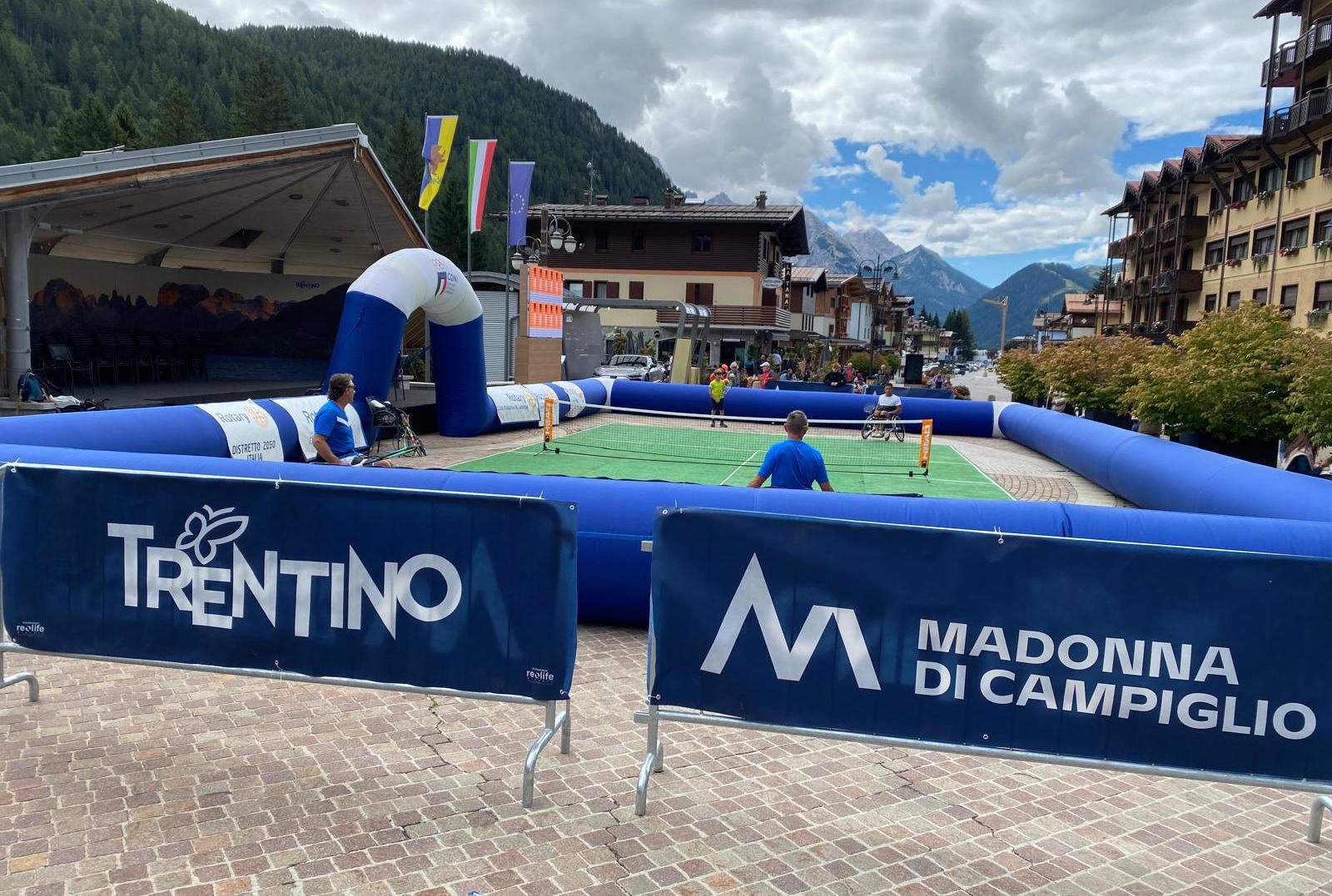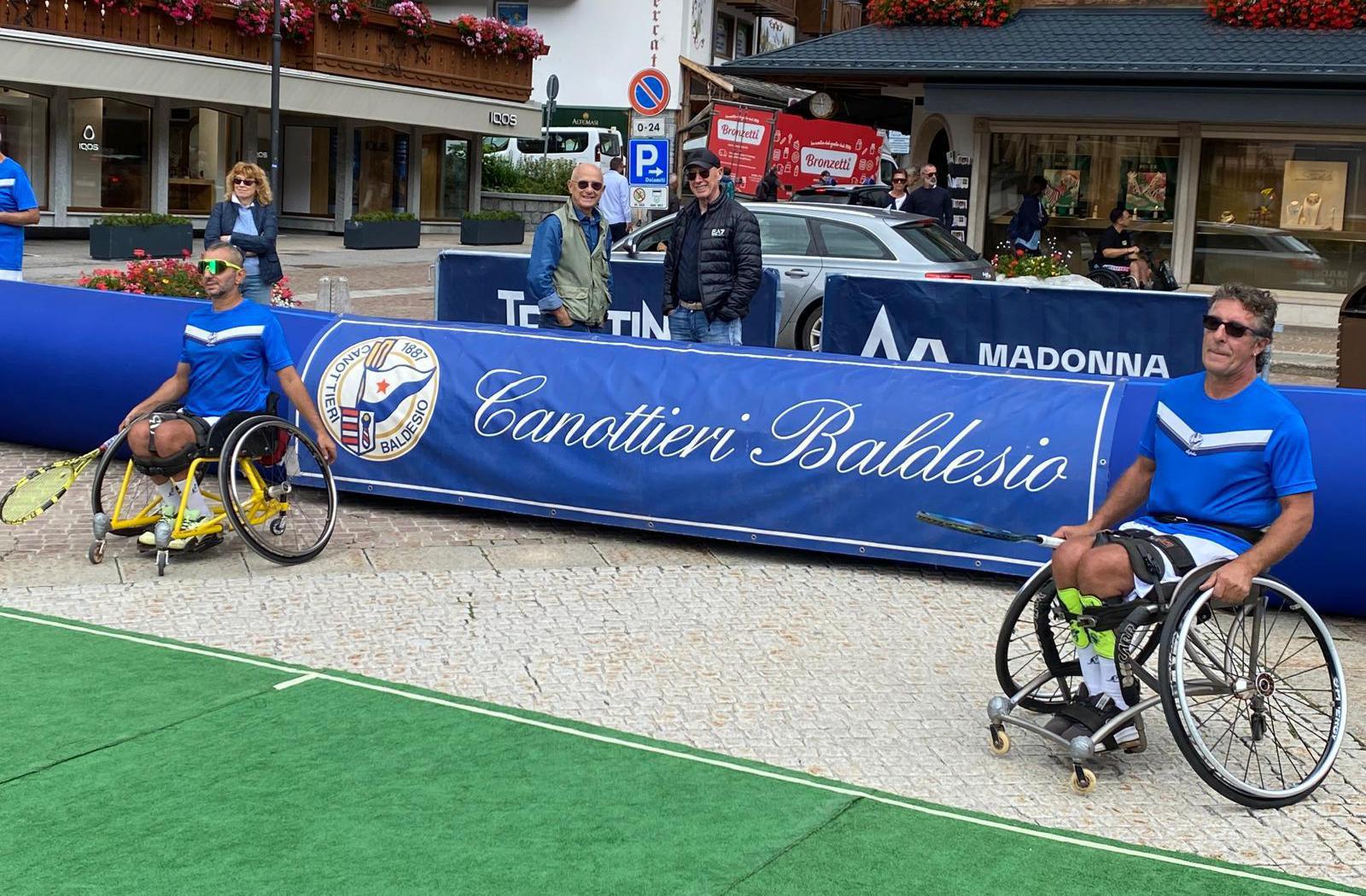 PINZOLO - Nella centralissima piazza Sissi a Madonna di Campiglio, si è svolta venerdì un’esibizione di tennis in carrozzina a cura della squadra della Canottieri Baldesio. Presenti gli atleti Dario Benazzi, Giordano Zavattoni e Simone Beltrame, accompagnati dal Team Manager Alceste Bartoletti e dall’allenatore Roberto Bodini.