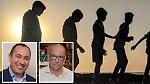 Alessandro Portesani e Cristiano Beltrami. Dietro, un senzatetto in una foto d'archivio