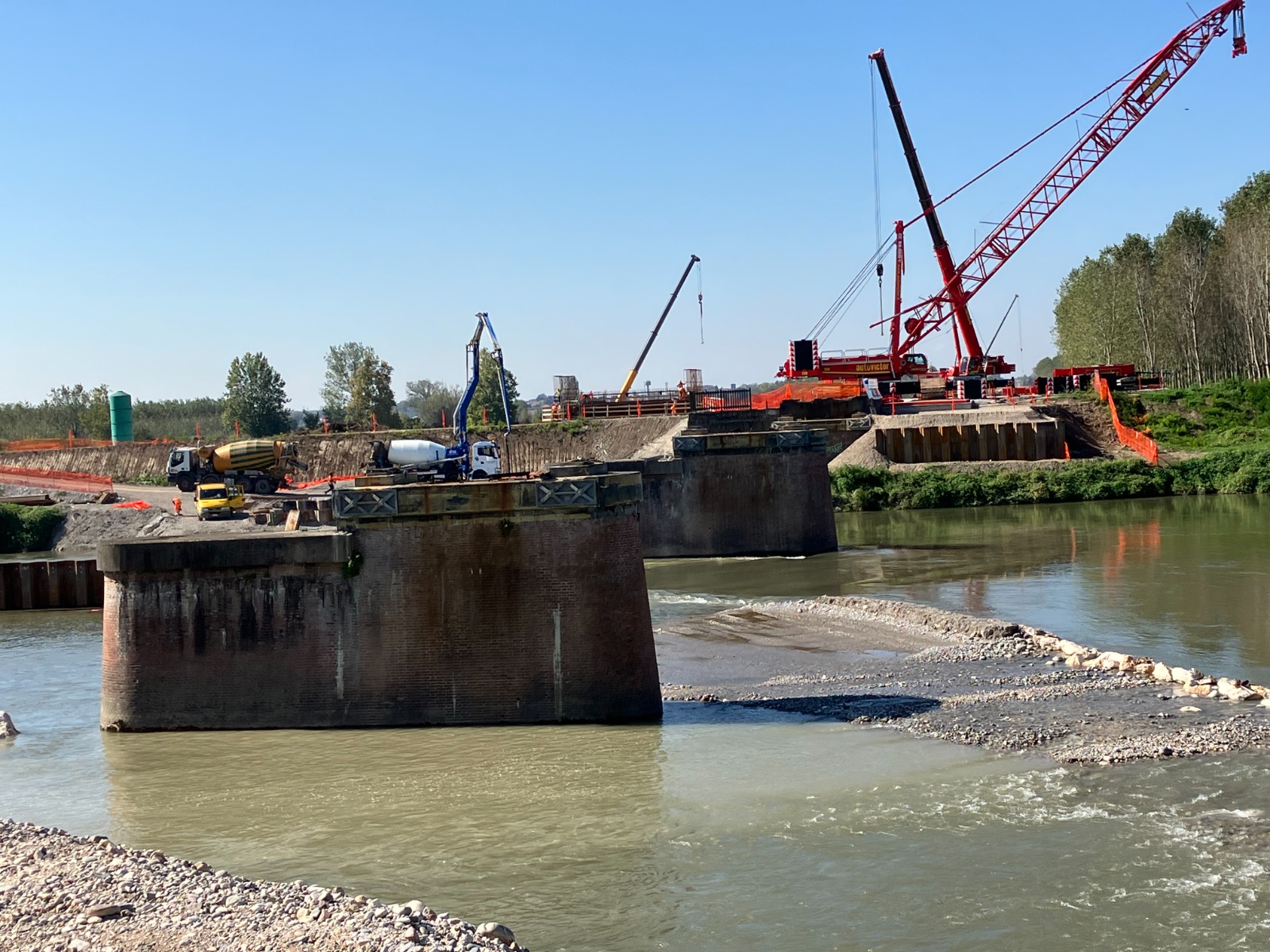Sul lato Bozzolo è stata installata una Tadano CC 38.650, con una capacità di 625 tonnellate. Sul lato Marcaria, invece, ha dominato la scena una Demag CC6800, una delle macchine più potenti al mondo, con una portata nominale di 1250 tonnellate.