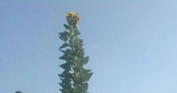 Angelo Cattaneo con il girasole record da 5,19 metri