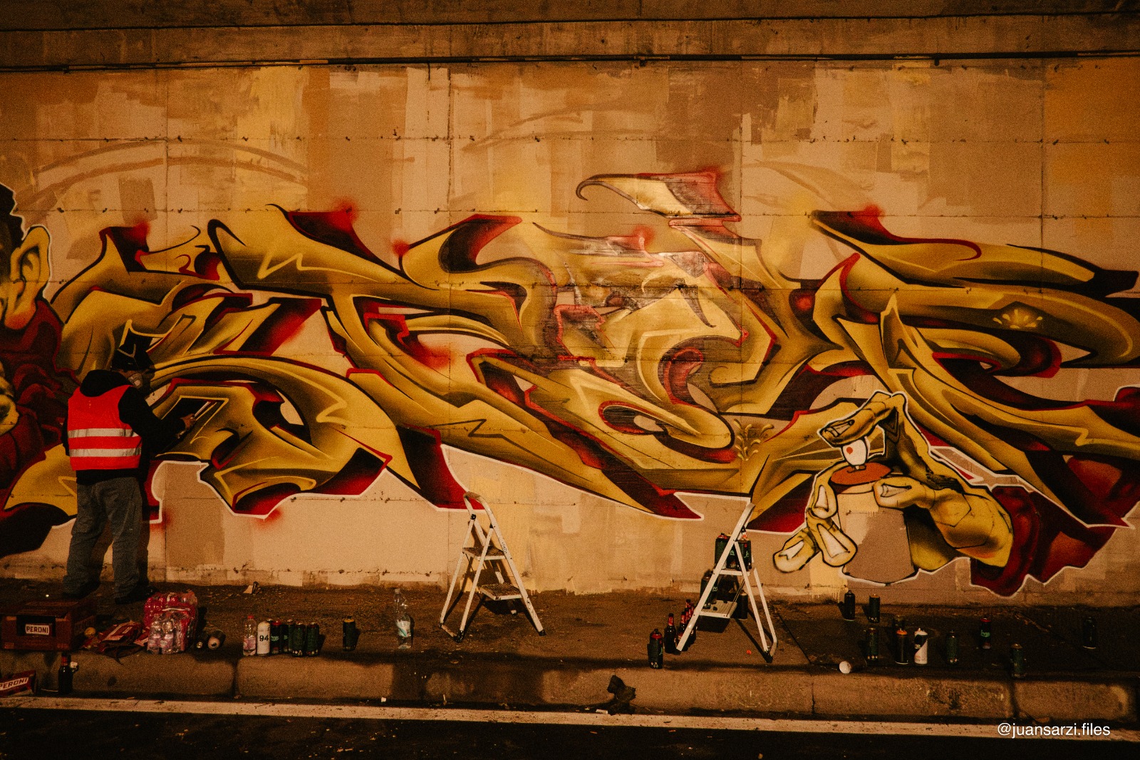 Nel corso delle due giornate dedicate 50 artisti, tra nomi affermati del mondo dei graffiti e giovani emergenti locali del laboratorio di street art dell’educativa territoriale, si sono dati appuntamento nel sottopasso sfidando la pioggia.