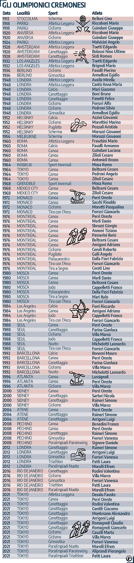 In piazza Duomo, dalle 10,30 alle 12,30 si terrà l’incontro con i cremaschi Marco Villa, olimpico di ciclismo e oggi ct della nazionale, e Patrizia Spadaccini, due volte medaglia d’oro paralimpica ad Atlanta 1996 nel ciclismo. Con loro Angelica Savrayuk, ex ginnasta azzurra medaglia di bronzo a Londra 2012, e Milena Baldassarri (ritmica) finalista olimpica a Tokyo 2020 e Parigi 2024.