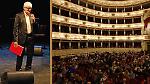 Introdotto dalla direttrice dell’istituto Lorenza Badini, che ne ha illustrato la lunga e autorevole carriera, Severgnini si rivolge subito ai ragazzi, ‘passeggiando’ tra il pubblico e lanciando provocazioni o battute. «Oggi con voi vorrei fare un gioco, non a caso l’incontro è intitolato ‘Domande?’». Lontano dallo stile dei conferenzieri da soliloquio, Severgnini intesse un botta e risposta dinamico e ficcante con gli studenti. Il gioco è semplice e, proprio per questo efficace: «Una domanda ve la faccio io e una me la fate voi, a turno». Il tema? «Qualunque argomento di attualità. Se non so rispondere, ve lo dico senza problemi, altrimenti vi dico la mia opinione».