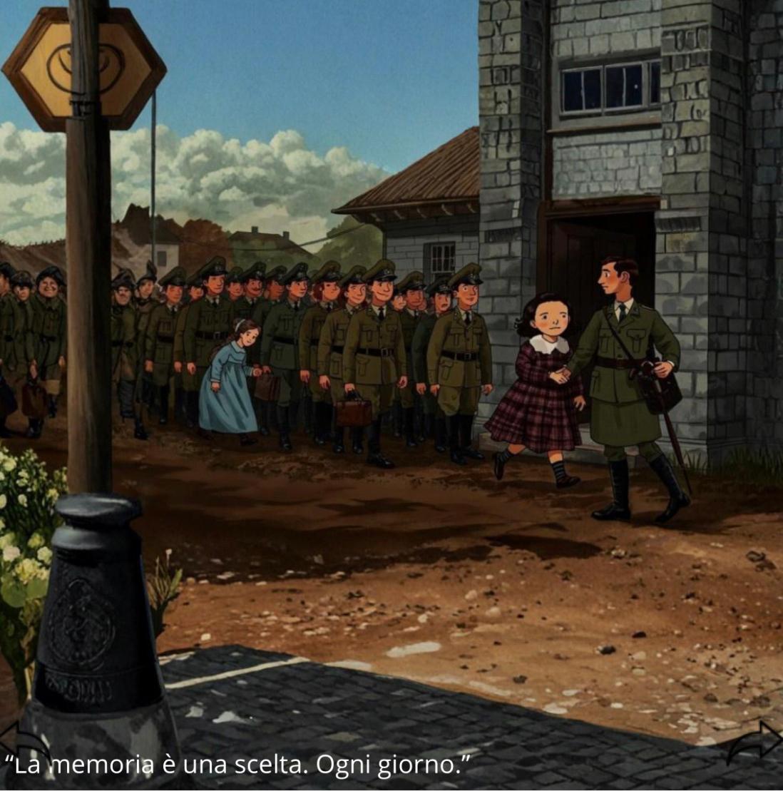 Il risultato finale è stato una raccolta di 14 albi illustrati sfogliabili in formato digitale, accessibili tramite QR code. Ma il progetto non si è fermato alla scuola. Nella mattinata del 27 gennaio, gli alunni hanno portato il loro lavoro fuori dalle aule, percorrendo le vie del paese per appendere i Qr code accompagnati da un testo di presentazione per invitare i cittadini a fermarsi, inquadrare, leggere e ricordare.