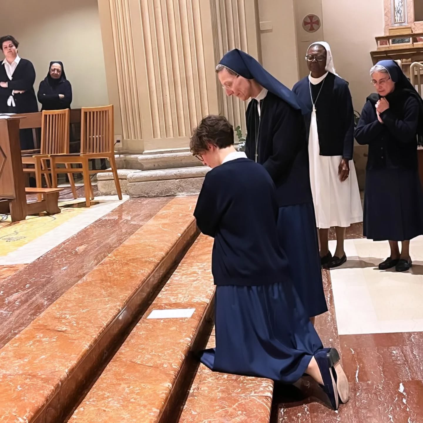 La novizia, affaincata dalla madre superiora Maria Luisa Ciceri, ha pronunciato i voti di povertà, castità e obbedienza. Si è così consacrata a Dio secondo le regole delle Adoratrici, entrando nella vita religiosa. Il prossimo passo sarà la professione perpetua.